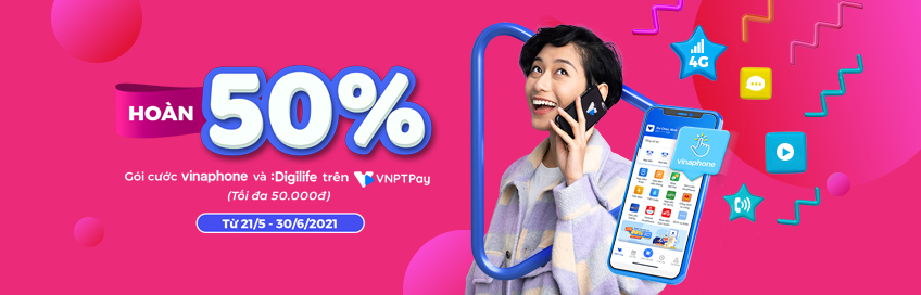 Hoàn tiền 50% gói cước VinaPhone và DigiLife qua VNPTPay